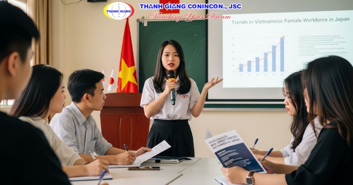 Ngoài ngoại ngữ, các kỹ năng mềm như làm việc nhóm, quản lý thời gian, khả năng chịu áp lực cũng rất cần thiết. Thanh Giang thường xuyên tổ chức các lớp rèn luyện kỹ năng phỏng vấn, kỹ năng làm việc theo phong cách Nhật nhằm giúp học viên nữ tự tin và chuyên nghiệp hơn khi sang Nhật làm việc.