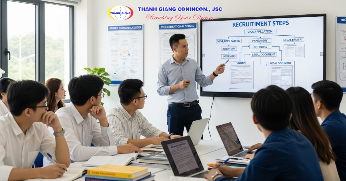 Trong suốt quá trình này, Thanh Giang đồng hành sát sao cùng học viên, từ việc chuẩn bị hồ sơ đến việc cập nhật tình trạng hồ sơ visa. Nhờ đó, ứng viên có thể yên tâm rằng mọi thủ tục đều được xử lý nhanh chóng đảm bảo tiến độ sang Nhật theo đúng kế hoạch.