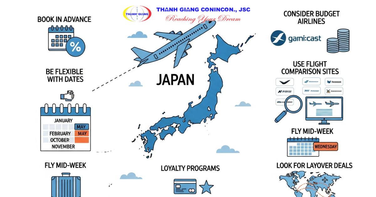 Ngoài ra, bạn có thể theo dõi các mùa giảm giá vé như “Japan Travel Fair”, “Black Friday” hoặc “Summer Promotion” của các hãng bay. Thanh Giang cũng thường xuyên hợp tác với đối tác hàng không để mang đến voucher ưu đãi và mã giảm giá vé đi Nhật dành riêng cho học viên. Việc tận dụng đúng thời điểm không chỉ giúp tiết kiệm mà còn khiến hành trình sang Nhật trở nên nhẹ nhàng hơn rất nhiều.