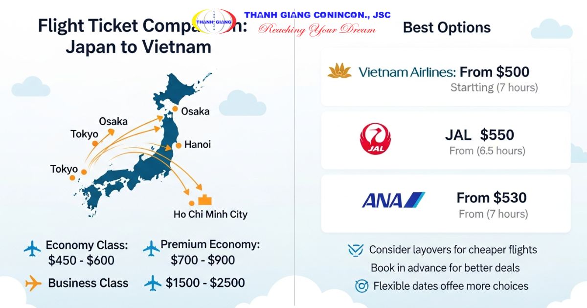 Thanh Giang luôn hỗ trợ học viên so sánh giá vé máy bay Nhật – Việt giữa các hãng để đưa ra lựa chọn hợp lý giúp cân bằng giữa chi phí và chất lượng dịch vụ trong mỗi hành trình bay.