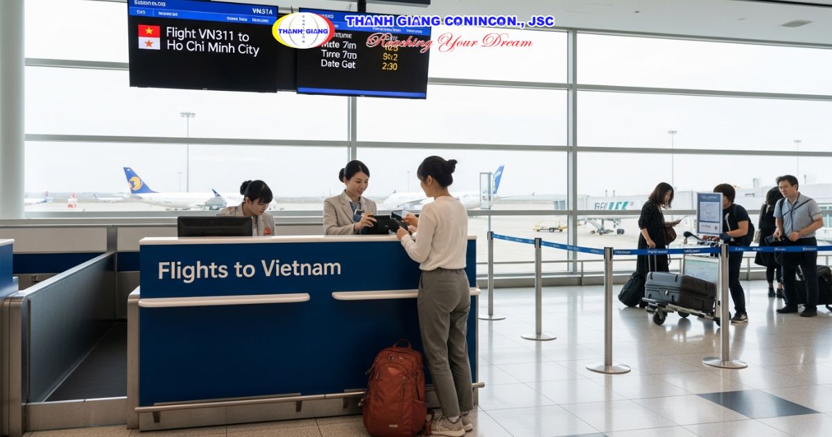 Ngoài việc hỗ trợ đặt vé khứ hồi từ Nhật về Việt Nam, Thanh Giang còn giúp học viên đặt vé chiều đi khi chuẩn bị nhập học tại Nhật đảm bảo hành trình suôn sẻ, tiết kiệm và đúng kế hoạch học tập.